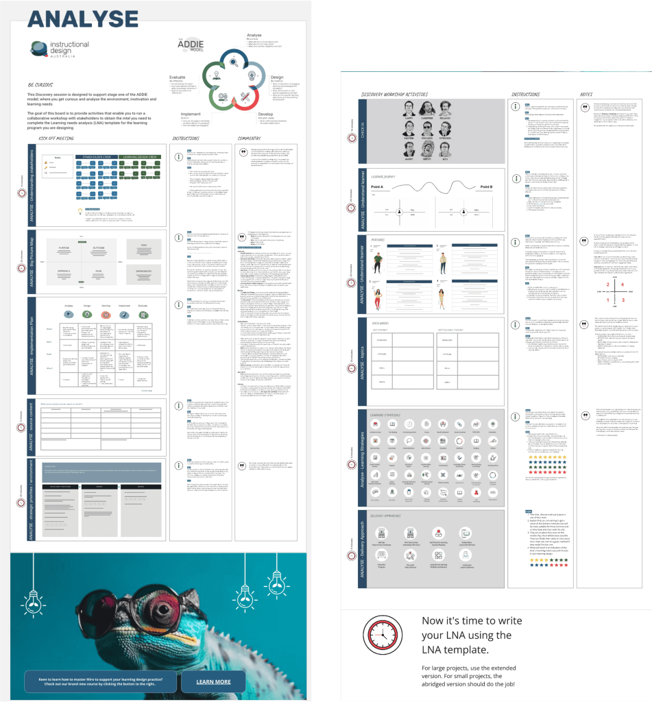 Our Miro board is designed specifically for instructional designers conducting discovery sessions and stakeholder interactions.